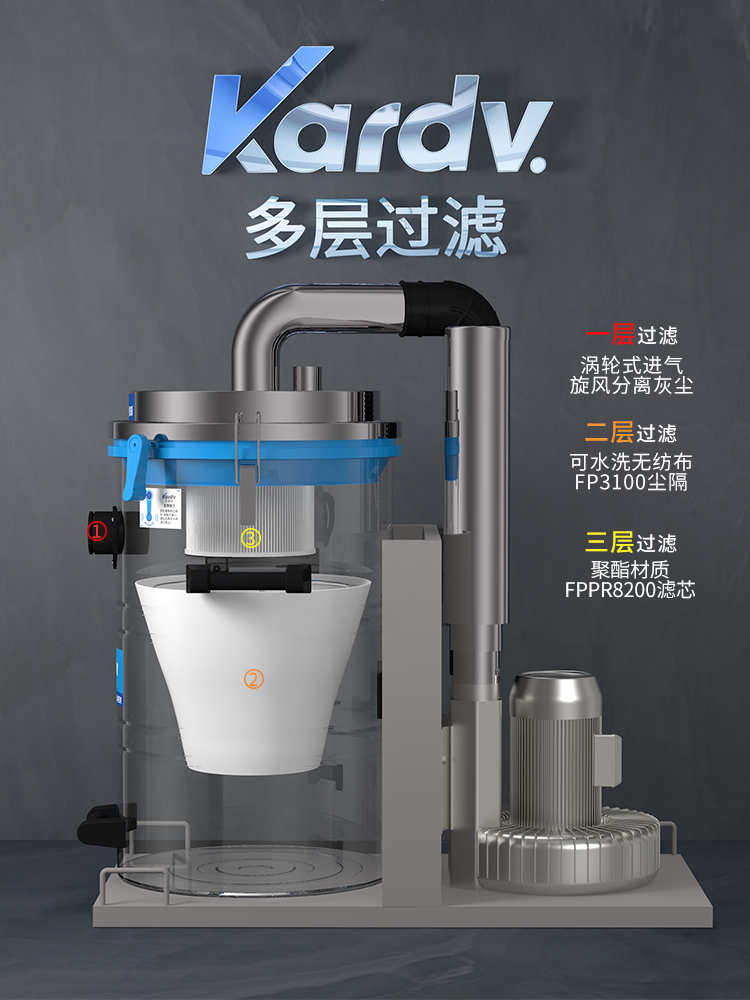 SK-510是一款工業吸塵器,整機采用工業設計風格,美觀硬朗,結構緊湊。機器集塵桶采用不銹鋼制作,桶壁光滑易清理;配有晃動振塵、泄壓閥。