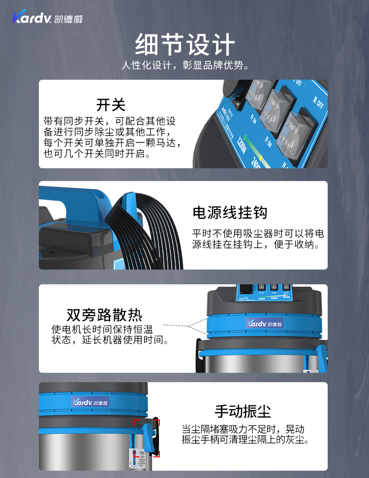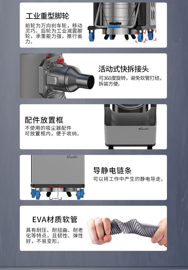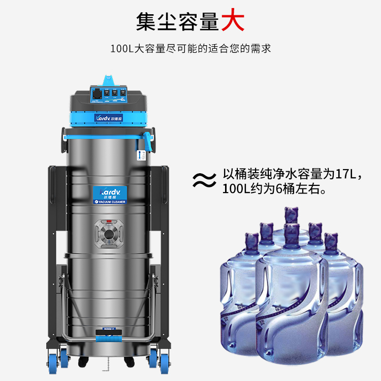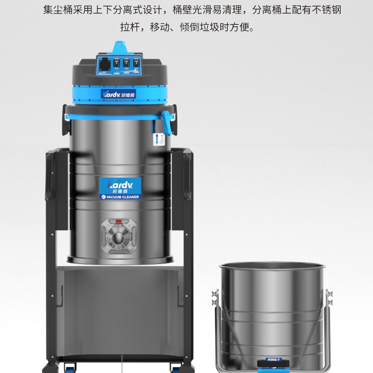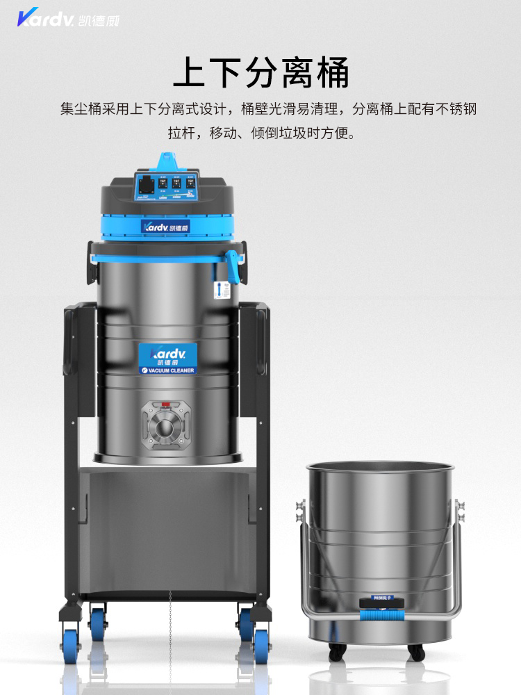 DL-3010B是一款工業型的產品,每小時可以清理1300cm2左右,3.6KW功率和100升的集塵桶;上下分離桶,桶壁光滑易清理,分離桶上配有推手,清理垃圾時輕松方便。機器配有置物箱,方便放置一些配件和工具。適用于工廠、倉庫或建筑工地的清理。