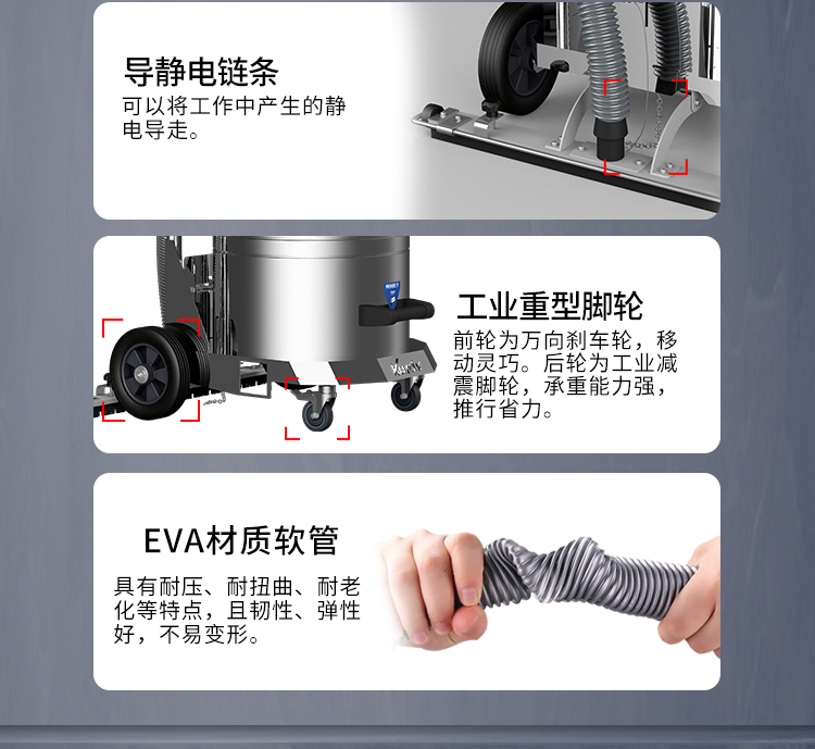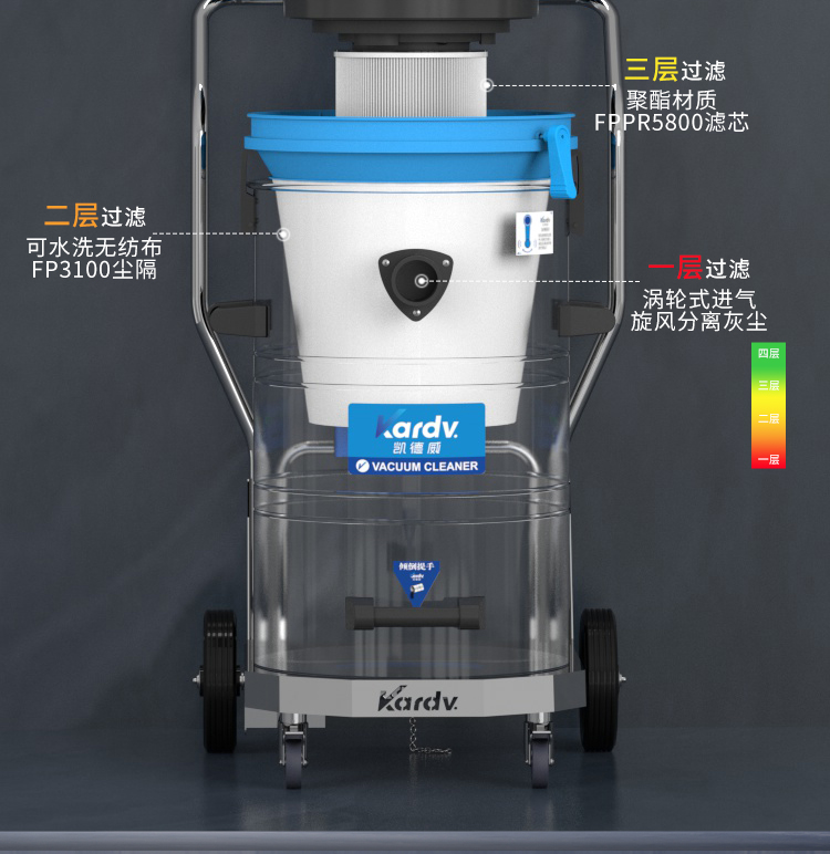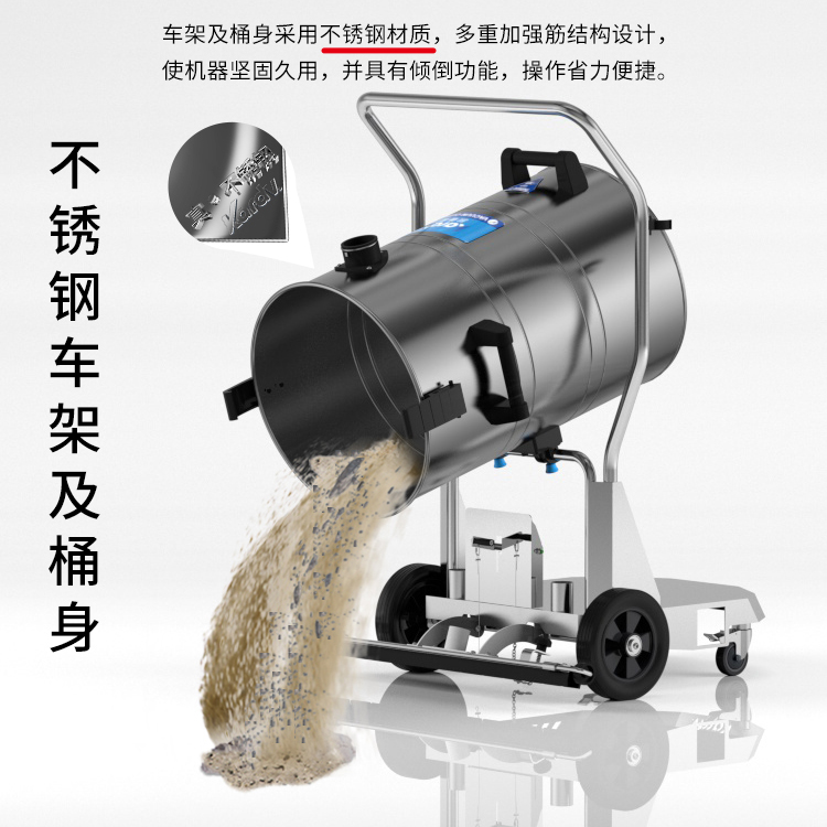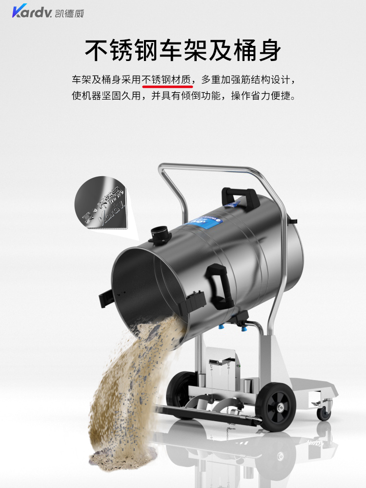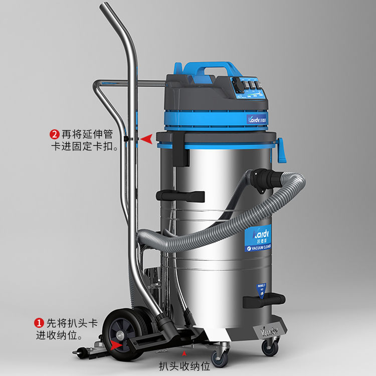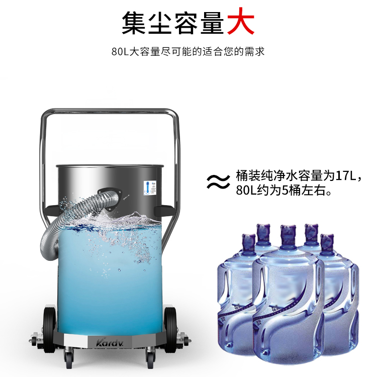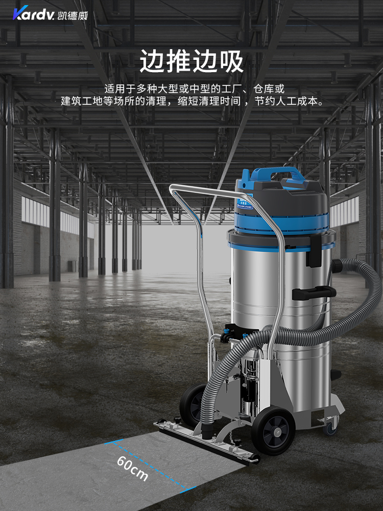 DL-3078P是一款工商業(yè)吸塵器,有3顆馬達(dá),可單獨(dú)或聯(lián)合開啟;集塵桶為80L,為不銹鋼材質(zhì),配有不銹鋼車架,在移動(dòng)時(shí)輕巧方便;配有手動(dòng)晃動(dòng)振塵,在使用的過程中,左右晃動(dòng)振塵手柄就可以起到清理過濾器的作用;配有60cm寬的推吸扒頭,可以邊推邊吸。可以用在工廠、倉(cāng)庫等場(chǎng)所清理灰塵等,在商業(yè)環(huán)境中也可以使用。