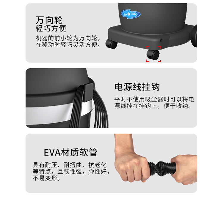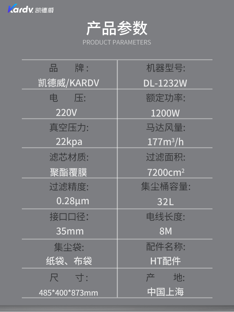 DL-1232W是一款工商業(yè)用吸塵器,集塵桶為32L,配有置物架,可以放置工具和配件,方便使用;配有車架,方便機器移動;散熱上采用上下氣道分離設(shè)計,排風(fēng)上借鑒了汽車排氣管的消音原理,延長了排風(fēng)的路徑及時間,所以產(chǎn)生的聲音相對要比普通的吸塵器聲音小;多層過濾裝置,使排出來的空氣相對潔凈;可以用在工業(yè)實驗室、無塵車間、凈化車間環(huán)境中,也可以使用在普通的商業(yè)、企業(yè)的辦公環(huán)境。