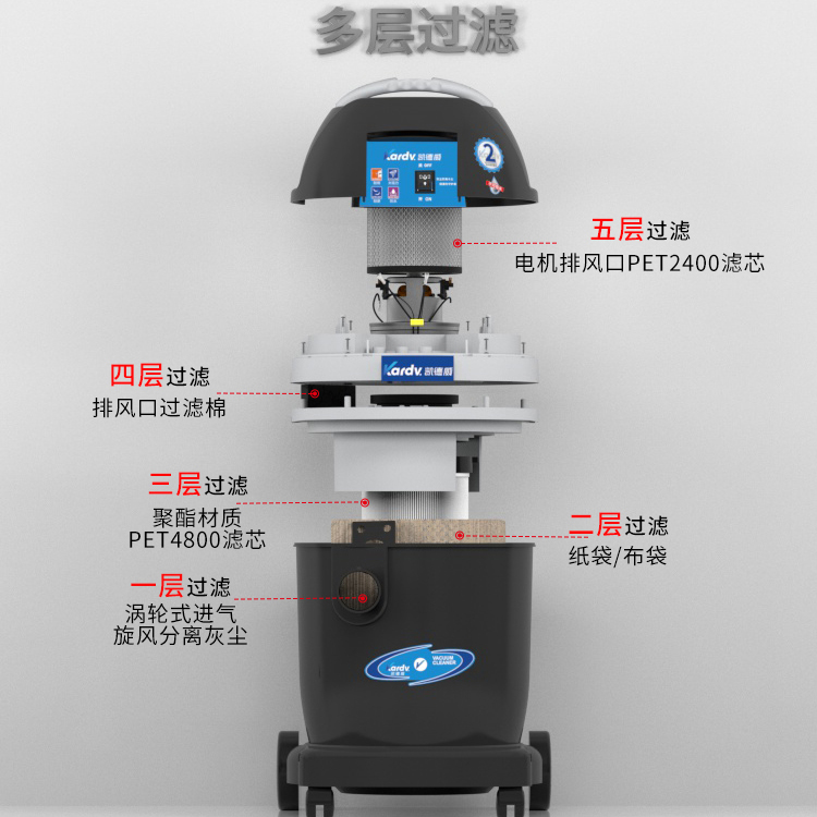 DL-1032W是一款工商業用吸塵器,集塵桶為32L,配有置物架,可以放置工具和配件,方便使用;散熱上采用上下氣道分離設計,排風上借鑒了汽車排氣管的消音原理,延長了排風的路徑及時間,所以產生的聲音相對要比普通的吸塵器聲音小;多層過濾裝置,使排出來的空氣相對潔凈;可以用在工業實驗室、無塵車間、凈化車間環境中,也可以使用在普通的商業、企業的辦公環境。